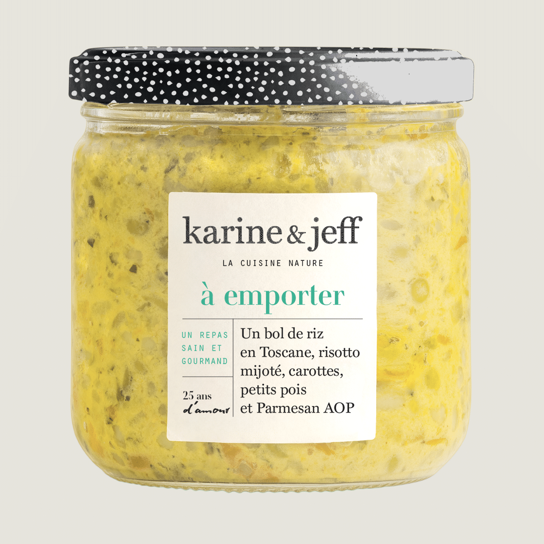 We use brown rice, known for its nutritional qualities, as the base of this dish. It’s cooked alongside carrots, peas, green beans, and cabbage—all organically grown in France—and is delicately seasoned with Herbes de Provence, a drizzle of olive oil, and a touch of Parmigiano Reggiano PDO for a tasty, authentic finish.
